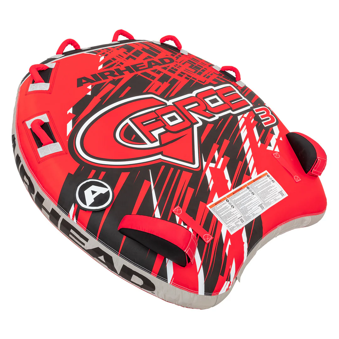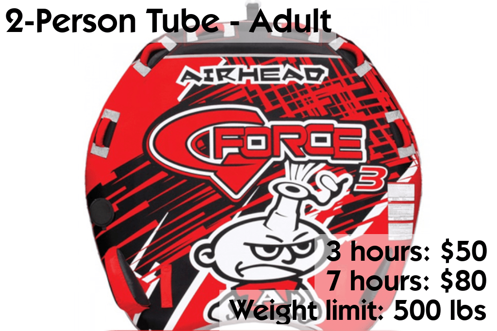 G-Force is a 1-3 Person Towable Deck Tube ready to rent. The Airhead G-Force 3 is a must rent accessory to go with your Lake Wallenpaupack boat rental. This tube is one of our most popular rented tubs as its innovative shape and bolster fins help to keep the riders on board. Lie down and grab onto the nylon-wrapped handles and enjoy the ride! We recommend using this as a 2 person tube, but it can accommodate up to 3. This tube has a 500lb weight limit.