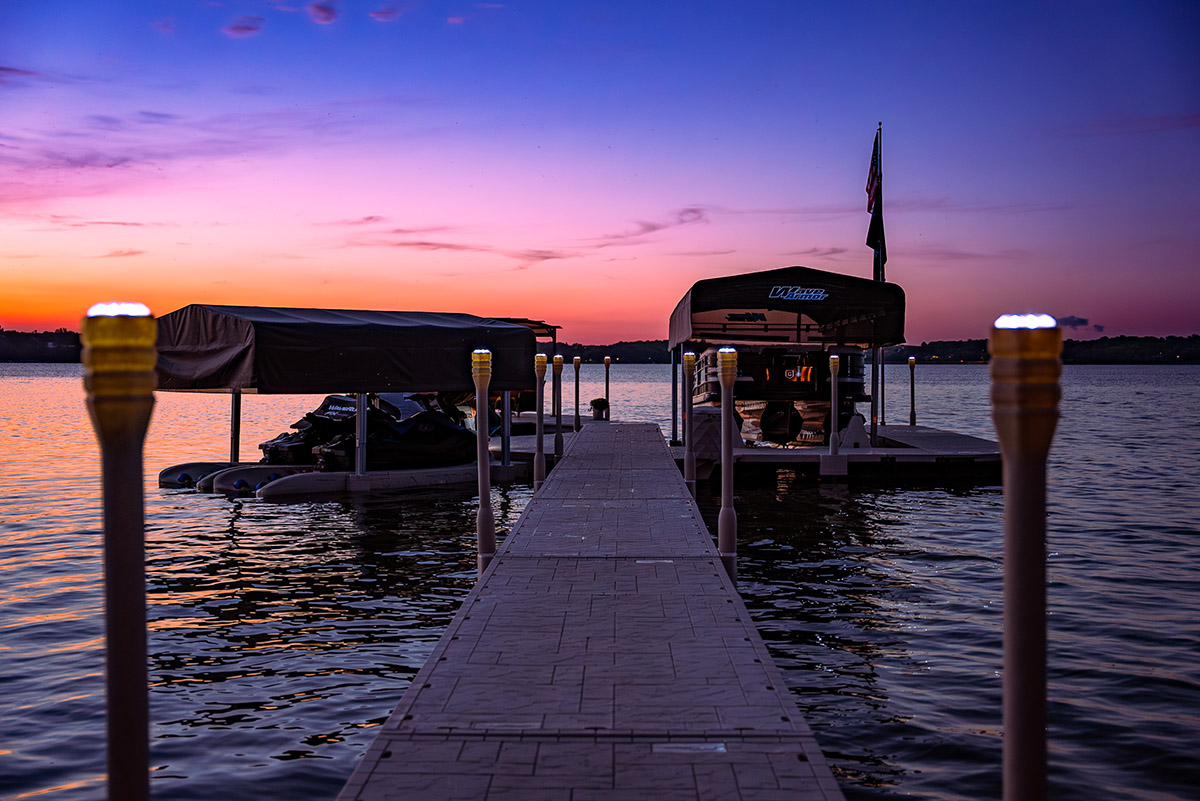 Solar Dock Lights easily snap into the mounting pockets around the Wave Dock perimeter, or on top of heritage dock post covers, lighting up your walk way and creating an ambient evening look.